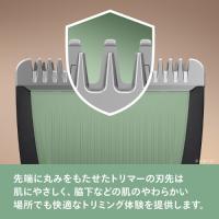 先端に丸みをもたせたトリマーの刃先は、肌にやさしく、脇下などの肌のやわらかい場所でも快適なトリミング体験を提供します。