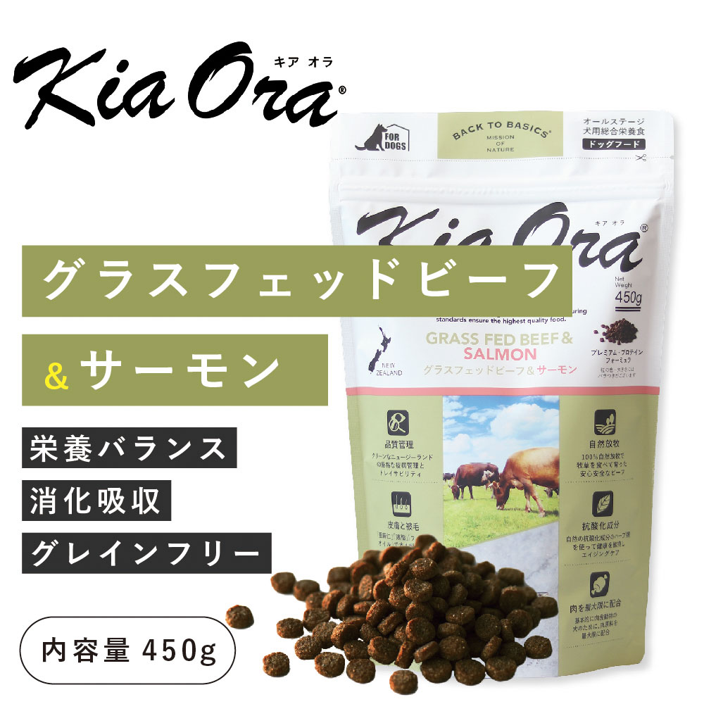 キアオラ(kia Ora)グラスフェッドビーフ&サーモン 450g(賞味期限 26年4月9日まで)ニュージーランド産 プレミアム ドッグフード 犬 フード