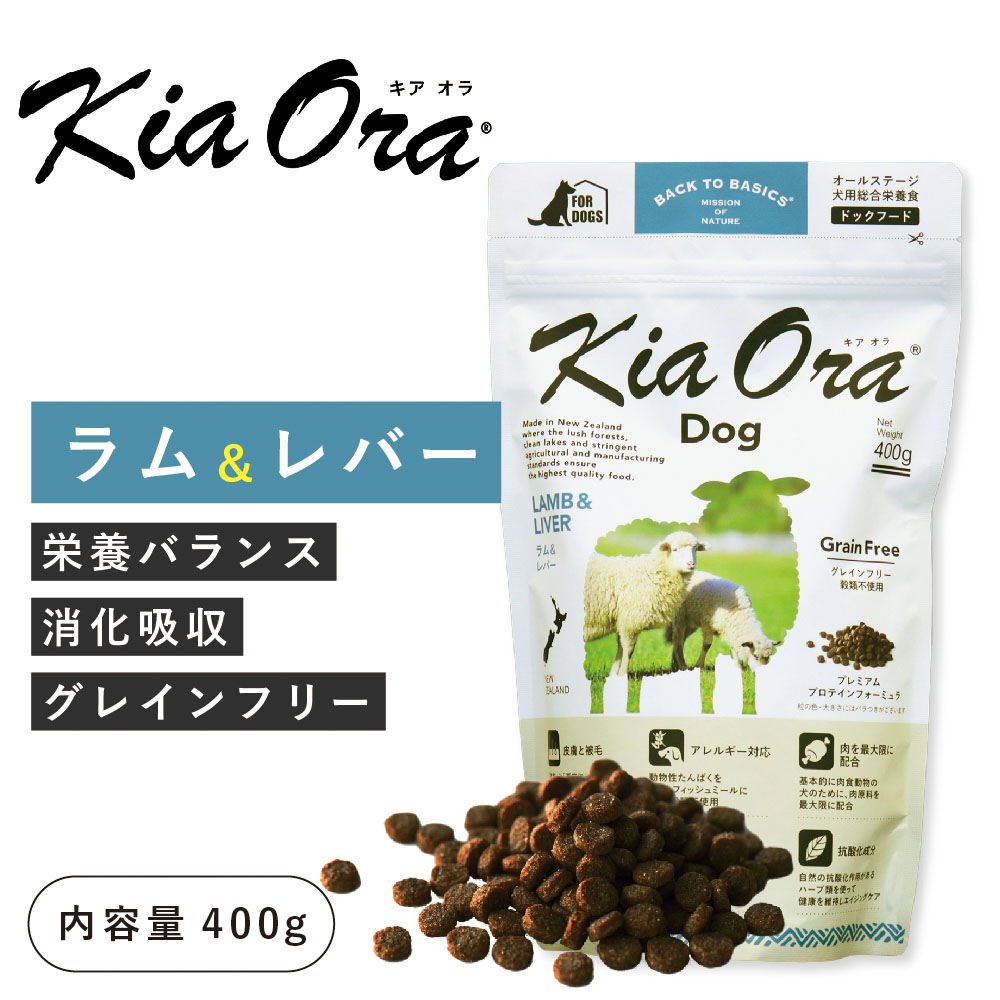 キアオラ(kia Ora)ラム&レバー 400g(賞味期限 26年5月12日まで)ニュージーランド産 プレミアム ドッグフード 犬 フード