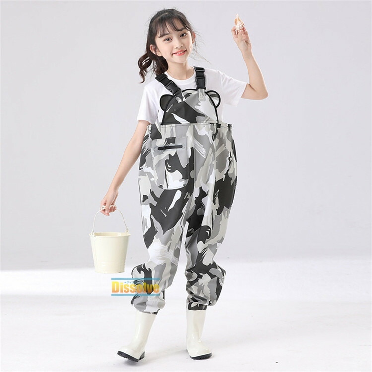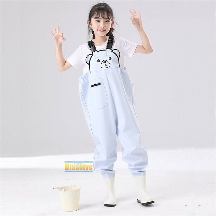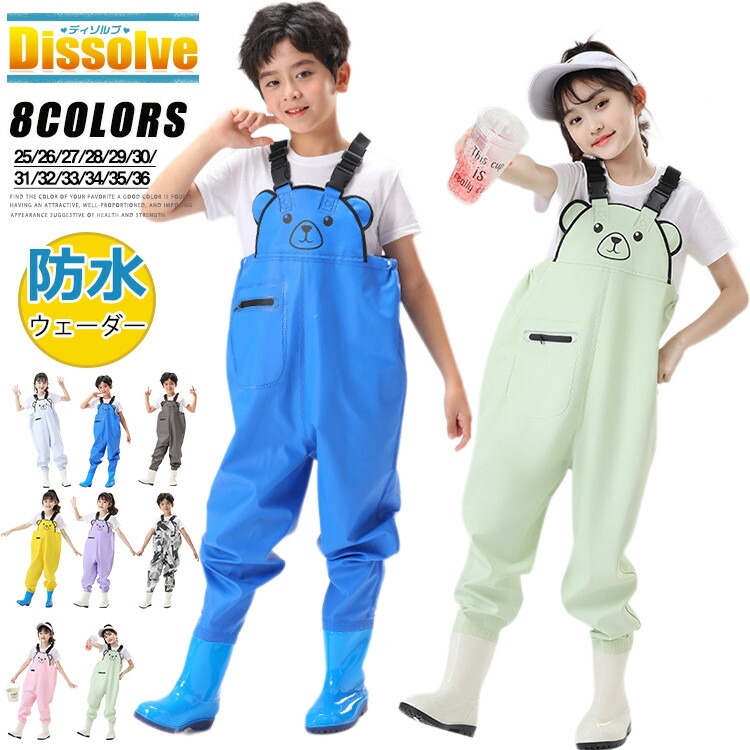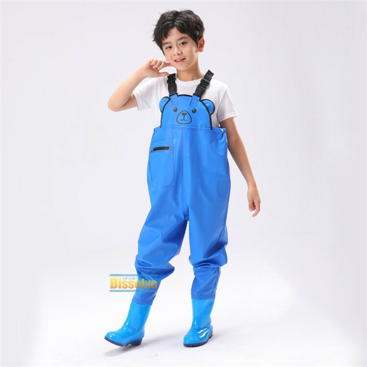 ウェーダー キッズ 長靴 川遊び 胴付長靴 ウエストハイ チェストウェーダー 一体型 防水 ズボン 子供用 女の子 男の子 アウトドア フィッシング つなぎ 水遊び