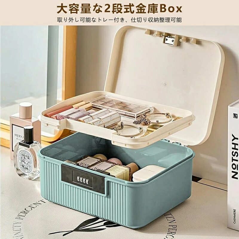 金庫 家庭用 小型 ダイヤル式 収納ボックス 貯金箱 防犯グッズ コンビネーションロック 頑丈 大容量 携帯便利 2段式 9L ミニ金庫 プラスチック製 キャッシュ
