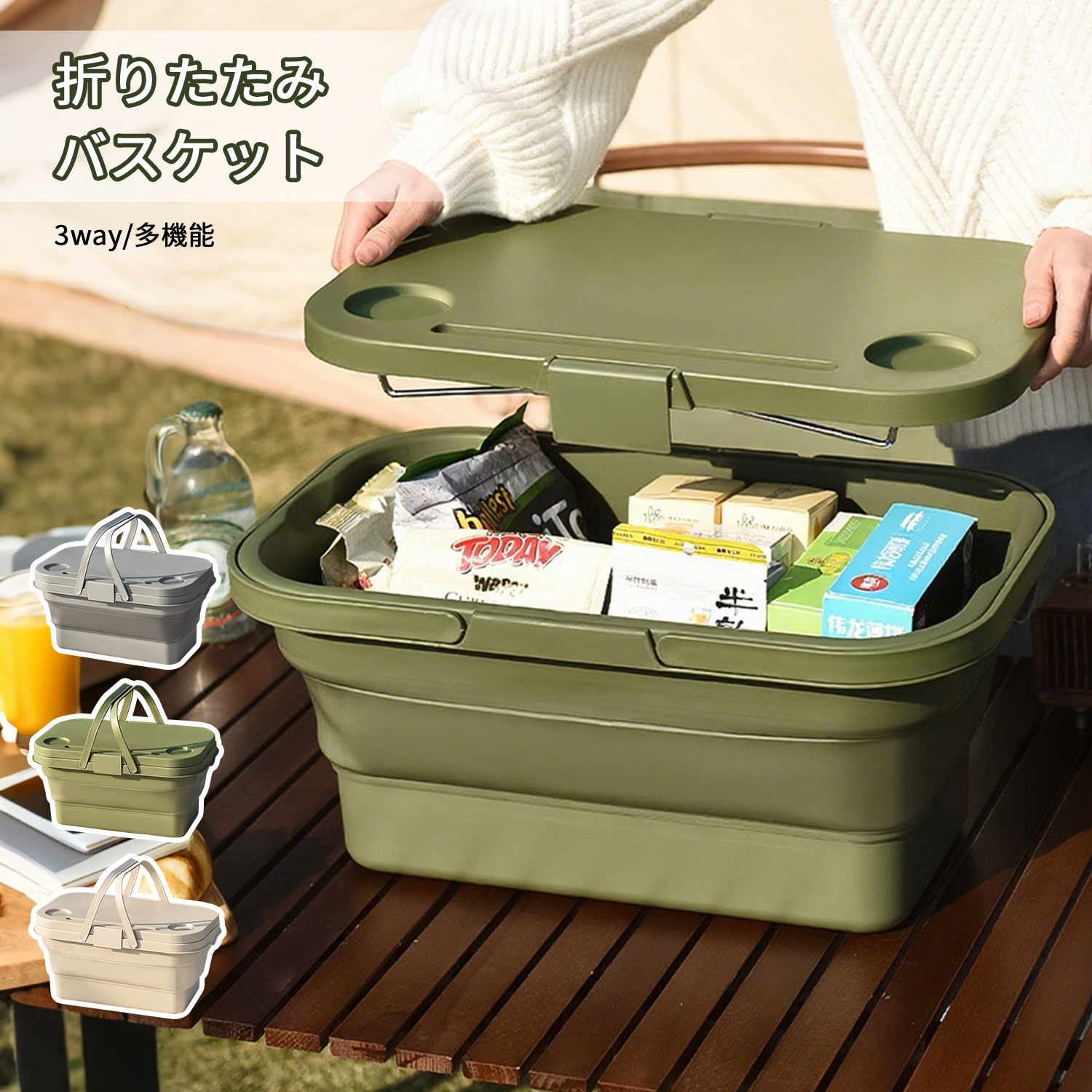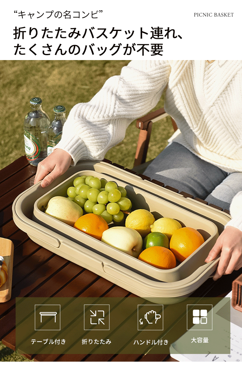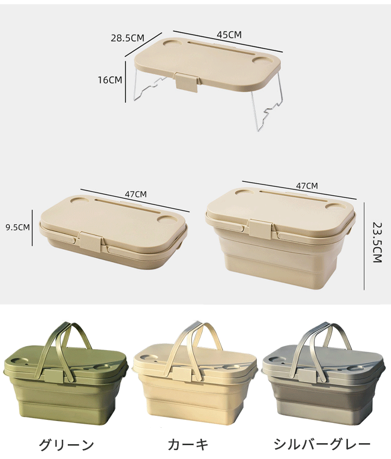 たっぷり入る大容量ながら、使用しないときはコンパクトに折りたたんで収納できるため、持ち運びや車載収納にも便利で、アウトドアから日常使いまで幅広く活躍します。