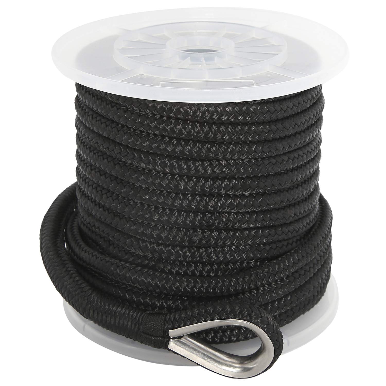 商品名: NovelBee 3/8インチ X 50フィート ダブルブレイド ナイロンアンカーライン ステンレススチールシンブルとプラスチックチャック付き NovelBee 3/8 Inch X 50 Feet Double Braid Nylon Anchor Line with Stainless Steel Thimble and Plastic Chuck (Black)