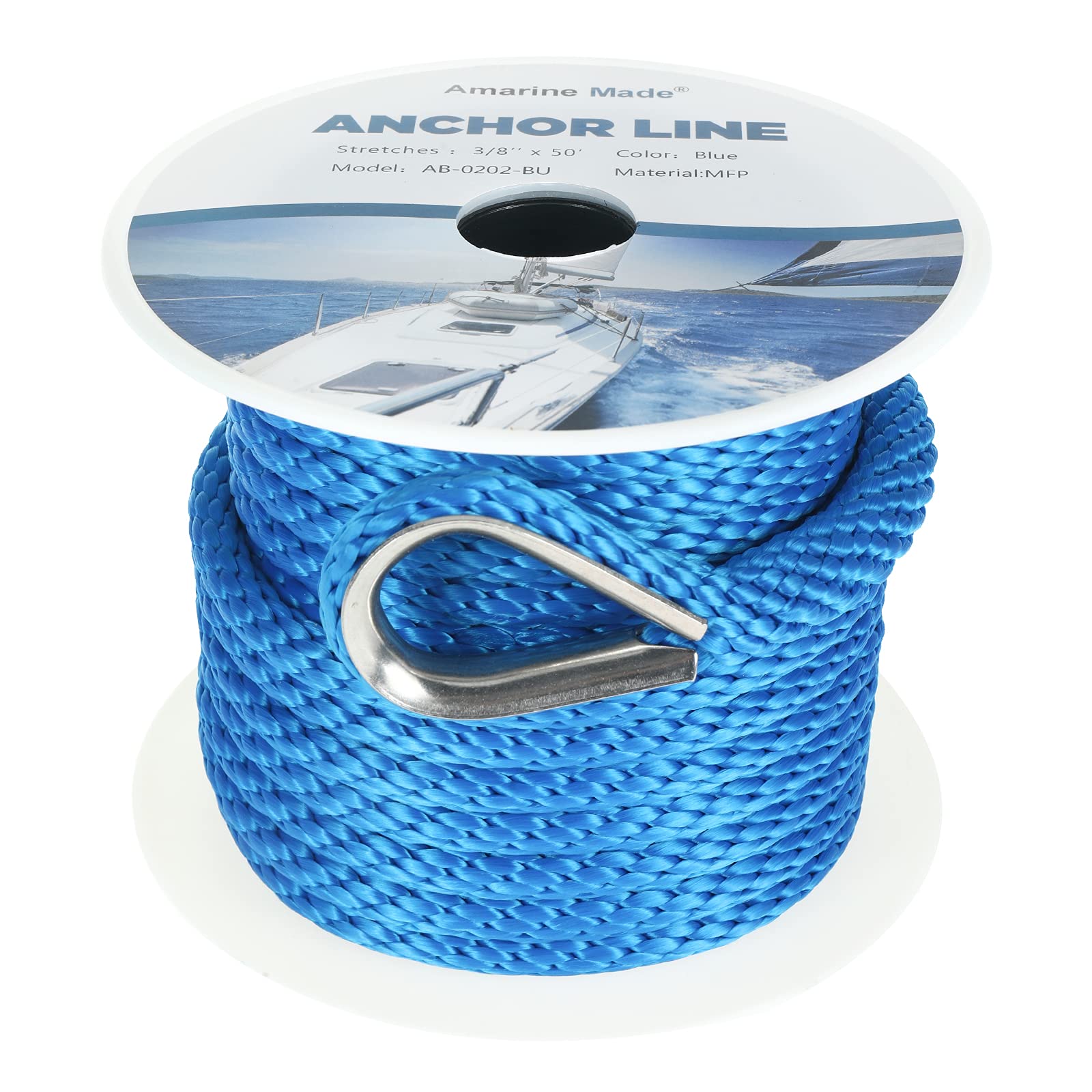 商品名: Amarine Made 3/8インチ 50フィート 100フィート 150フィート プレミアムソリッドブレイド MFPアンカーライン 編組アンカーロープ/ライン 指ぬき 破断強度800kg ブルー 50フィート Amarine Made 3/8 Inch 50FT 100FT 150FT Premium Solid Braid MFP Anchor Line Braided Anchor Rope/Line with Thimble-800kg Breaking Strength (Blue, 50ft)