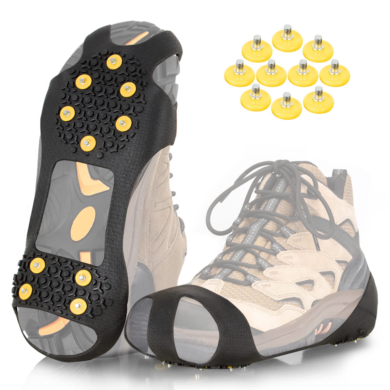 Walk Traction Cleats Ice Crampons for Men Women,Running on Snow and ice Anti Slip Shoe Grips Portable Ice Grippers for Shoes & Boots 10 Spikes,Protect for Hiking Fishing Walking Climbing by ZOMAKE.