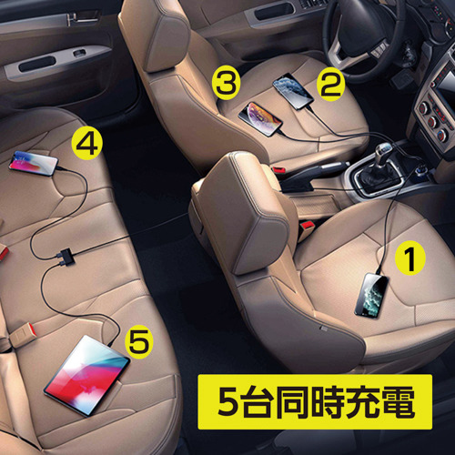●5つのUSB-Aポートを備えたDC/USB出力変換充電器