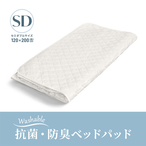 [セミダブル]ヤマダオリジナル 抗菌・防臭ベッドパッド 120×200cm ベーシック 丸洗い可能 抗菌防臭 ホワイト