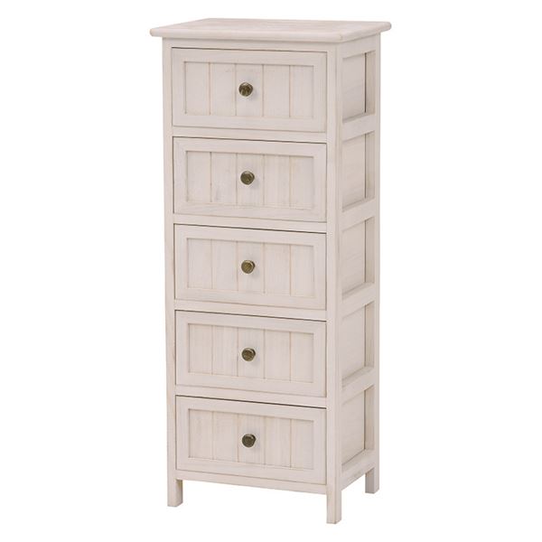 スリムチェスト 幅35cm 5段 アンティークホワイト リビング収納棚 コンパクト 木製 Rural ルーラル 完成品 送料無料