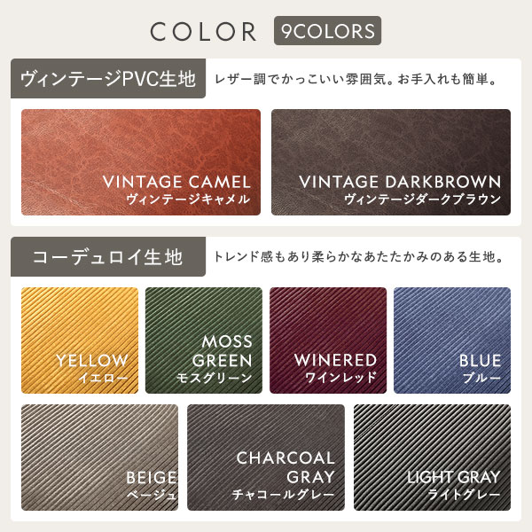コーデュロイ生地:イエロー、モスグリーン、ワインレッド、