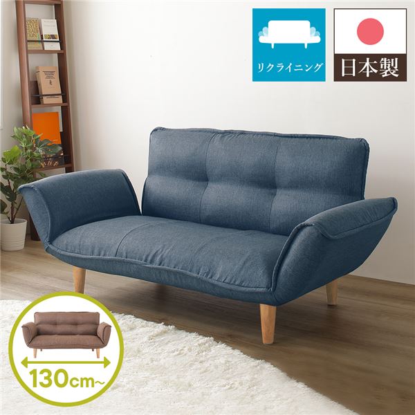 こちらは「日本製 リクライニングソファー/カウチソファー 【2人掛け デニム調生地 インディゴブルー】 脚部:ナチュラル 肘付き 脚付き」の商品ページです。