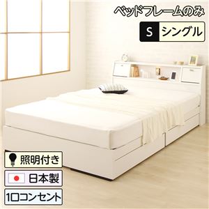 【商品名】 ベッド 日本製 収納付き 引き出し付き 木製 照明付き 棚付き 宮付き コンセント付き シングル ベッドフレームのみ『AMI』アミ ホワイト 【ジャンル・特徴】 棚付き コンセント付き 間接照明 引き出し付き シングルベッド 爆買