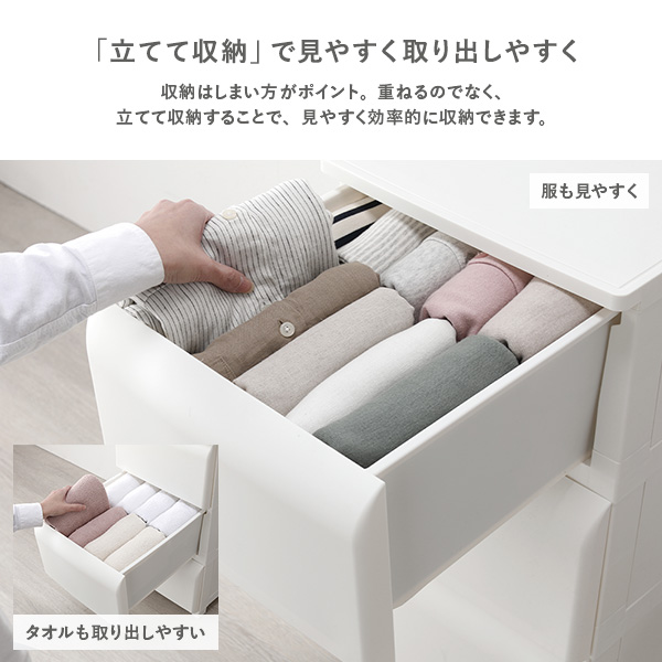 タオルなどをすっきりとたっぷり収納できます。