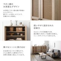 本物のような木目柄と、ラタン調の扉が特徴の大人デザインなキャビネット。