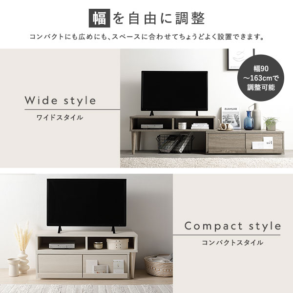 幅90〜163cmで伸縮するので、お部屋の間取りに合わせて最適化。