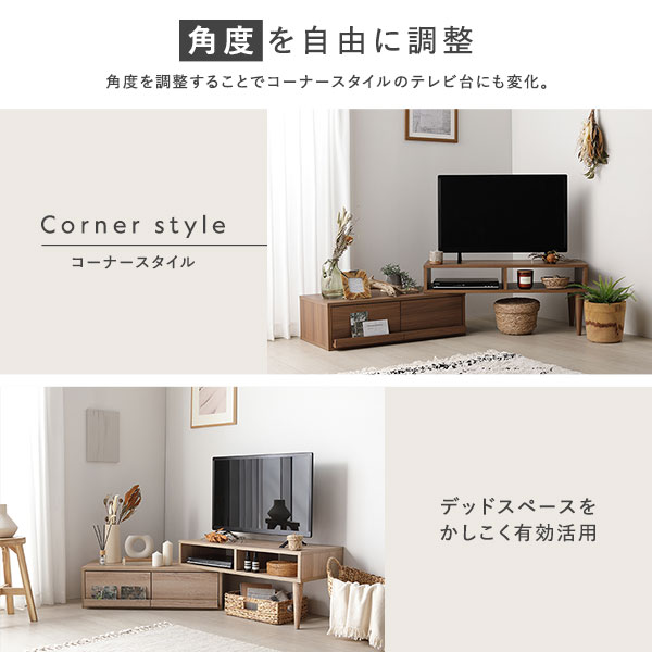 角度を調整することでコーナースタイルのテレビ台にも変化。