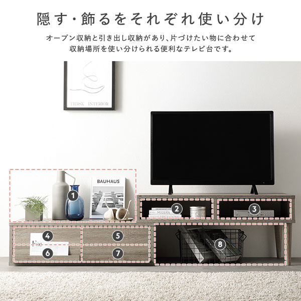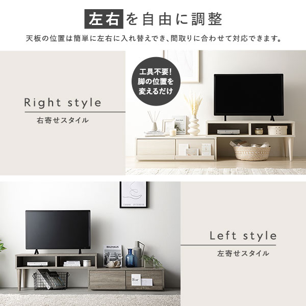 間取りに合わせてレイアウトが自由にできるフレキシブルなテレビ台。