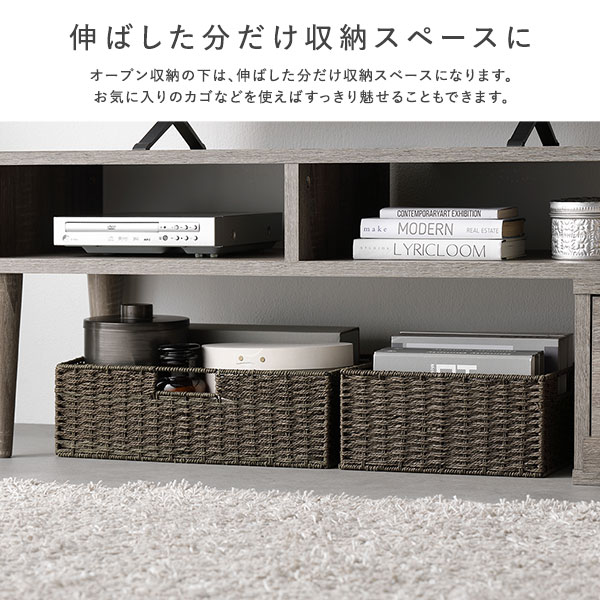 オープン収納の下は、伸ばした分だけ収納スペースになります。