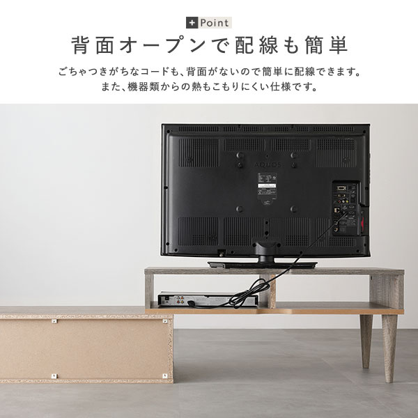 ごちゃつきがちなコードも、背面がないので簡単に配線できます。