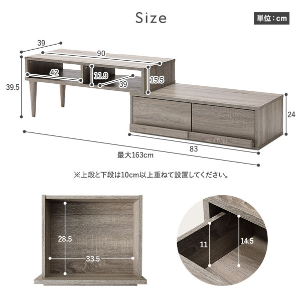 ・上段と下段は必ず10cm以上重なるように設置してください。上段が落下して怪我や破損の恐れがあります。