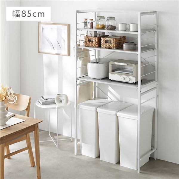 【商品名】 レンジラック ゴミ箱上収納タイプ 幅85cm スチール 可能棚付 省スペース 頑丈 キッチン収納 キッチンラック Kitte キッテ 【ジャンル・特徴】 レンジ ラック キッチン 台所 収納 レンジボード キッチンカウンター キッチンボード キッチンキャビネット キッチン家具 インテリア家具 インテリア用品 インテリア雑貨 デッドスペース 省スペース 可動棚 頑丈 丈夫 お手入れ簡単 引っ越し 引越し 新生活 プレゼント