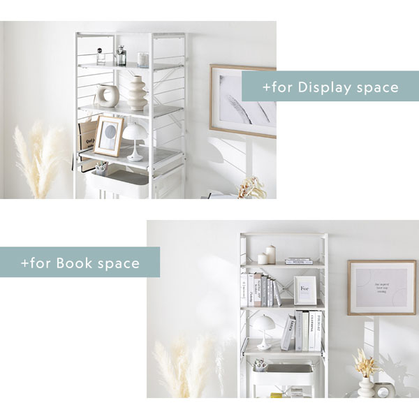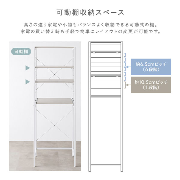 細かいピッチ設定で、小物から大物家電まで効率よく収納可能。