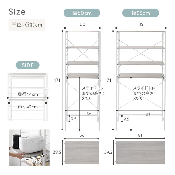 幅85cm:幅85×奥行44×高さ171cm(スライドトレーまでの高さ:89.5cm)