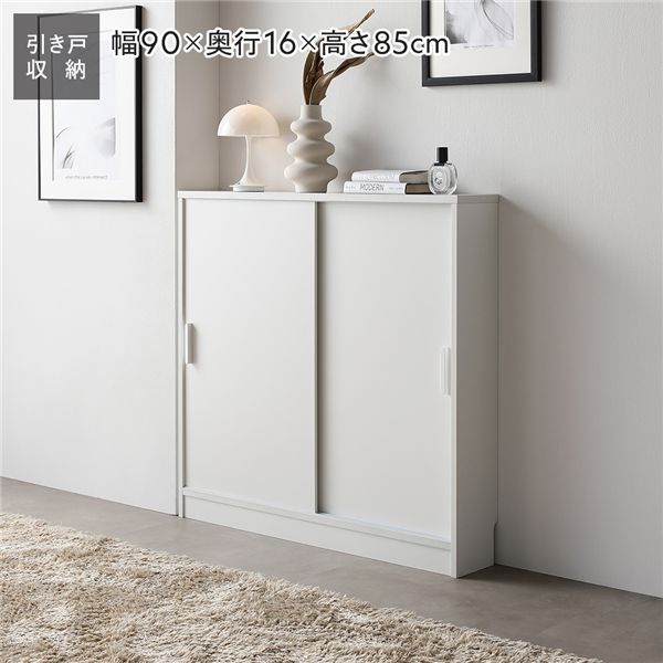 【商品名】 キャビネット サイドボード スリム 収納棚 カウンター下収納 約幅90×奥行16cm 薄型 引き戸 可動棚 リビングボード リビング収納 Ecart エカート 【ジャンル・特徴】 収納 棚 ラック インテリア家具 インテリア用品 インテリア雑貨 リビング ダイニング キッチン 台所 カウンター下 キッチンカウンター キッチンボード デスク 書斎 子供部屋 ベッドルーム 棚付き 省スペース お手入れ簡単 引っ越し 引越し 新生活 1人暮らし プレゼント