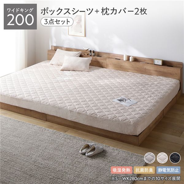 ワイドキング200〜ワイドキング280:ボックスシーツ(1枚) + 枕カバー(2枚) 3点セット