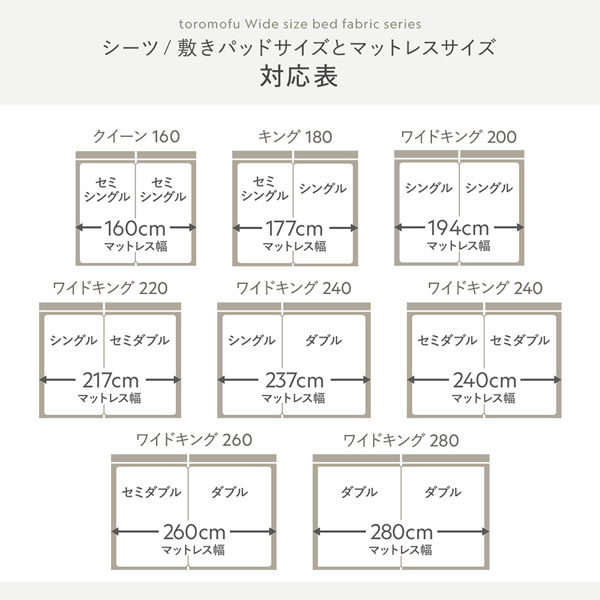 ワイドキング200〜ワイドキング280:敷きパッド(1枚) + 枕カバー(2枚) 3点セット