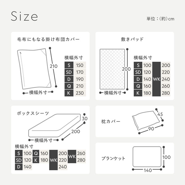 ・枕カバー、敷きパッド、ボックスシーツ