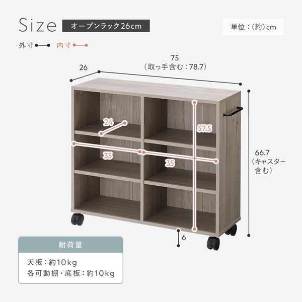 奥行26cm:幅75×奥行26×高さ66.7cm(キャスター含む)