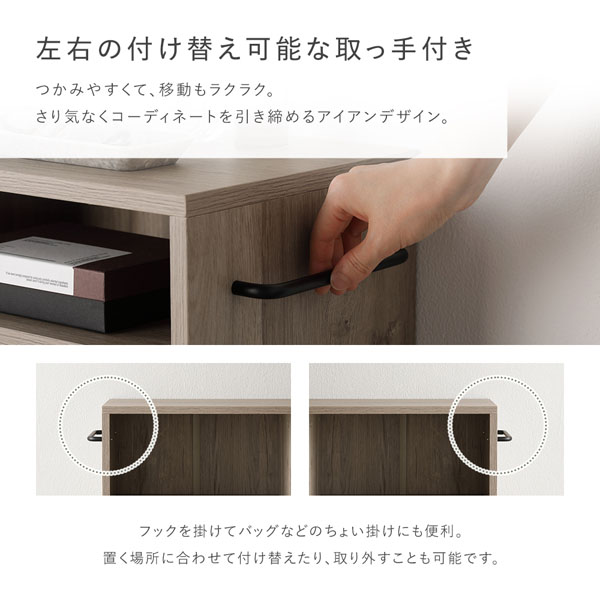置く場所に合わせて付け替えたり、取り外すことも可能です。