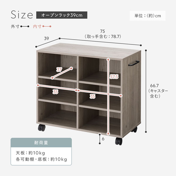 奥行39cm:幅75×奥行39×高さ66.7cm(キャスター含む)