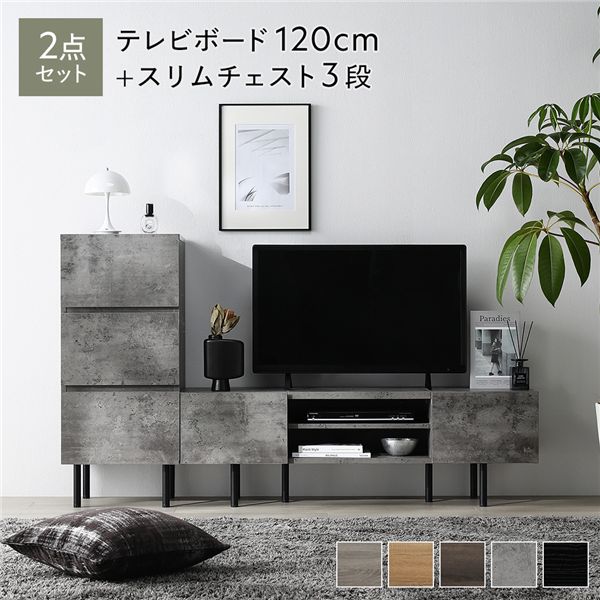 ■テレビボード120cm幅+スリムチェスト3段 ストーングレー[当ページ]