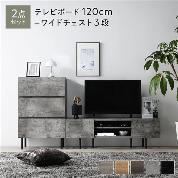 ■テレビボード120cm幅+スリムチェスト3段 ストーングレー■テレビボード120cm幅+ワイドチェスト3段 ストーングレー[当ページ]