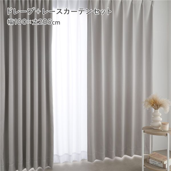 ・幅200cm:ドレープ・レースカーテン 各1枚入り(計2枚セット)