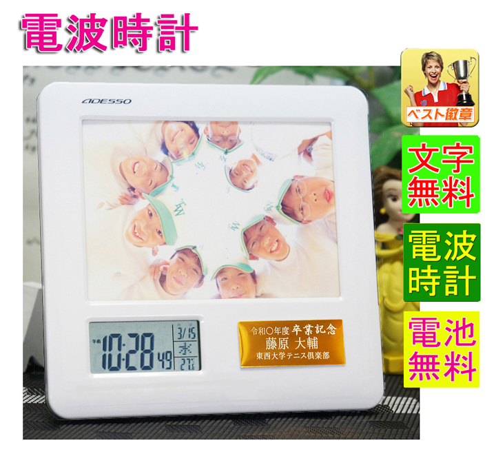 フォトフレーム 卒業記念品 名入れ(レーザー文字無料)電波時計付 卒業記念 卒団記念 卒園記念 卒部記念 部活 先生 監督 記念品 写真立て A-8785