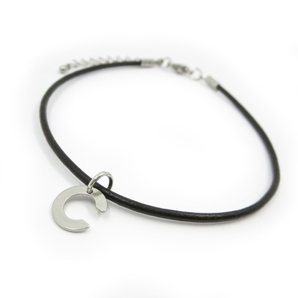 C イニシャルレザーアンクレット ステンレスチャーム アルファベット