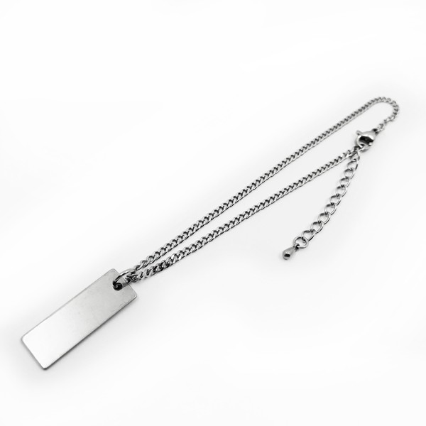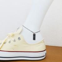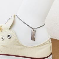 ステンレスチェーンアンクレット 2.2mm幅 2面カット喜平チェーン プレートチャーム(約25x9mmx0.9mm)付き