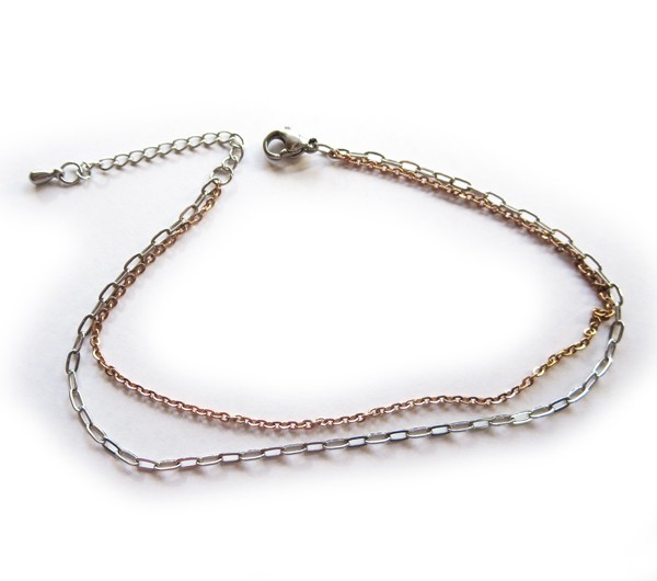 2連小豆 ピンクゴールド 幅1.6mm ステンレスアクセサリー ステンレスチェーンアンクレット アジャスター付き