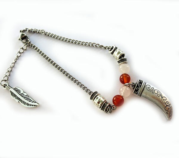 パワーストーン 合金チャーム 牙アンクレット ローズクォーツ&カーネリアン 6mm玉