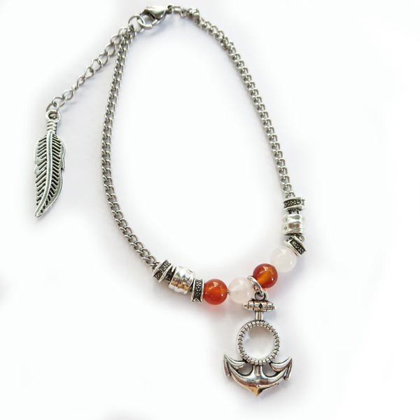 パワーストーン 合金チャーム 錨アンクレット ローズクォーツ&カーネリアン 6mm玉