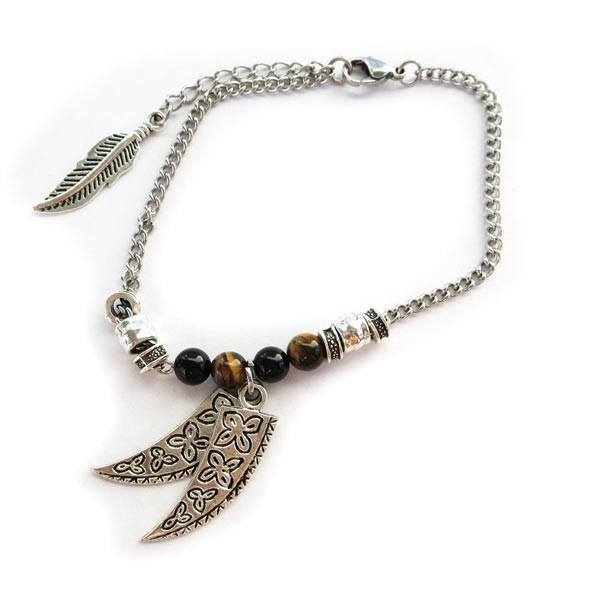 パワーストーン 合金チャーム 錨アンクレット オニキス&タイガーアイ 6mm玉
