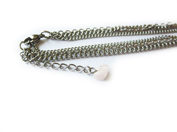 3連 ステンレスチェーンアンクレット パワーストーン ローズクォーツ アジャスター付き ステンレスアクセサリー
