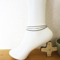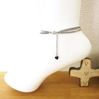 3連 ステンレスチェーンアンクレット パワーストーン オニキス アジャスター付き ステンレスアクセサリー