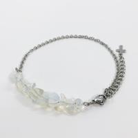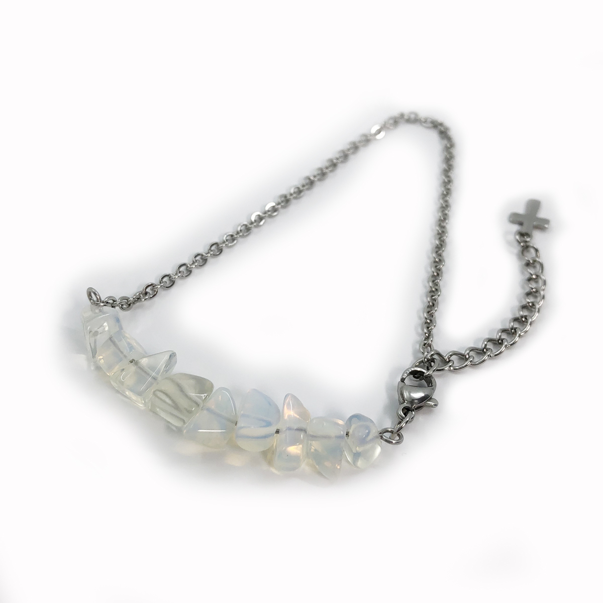 ステンレスチェーンアンクレット 人工オブシディアンオパール チェーン2.4mm幅