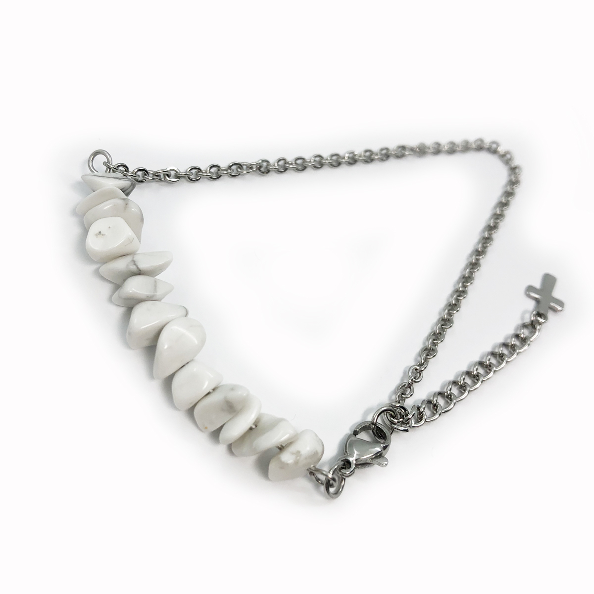 ステンレスチェーンアンクレット ホワイトハウライト チェーン2.4mm幅