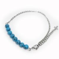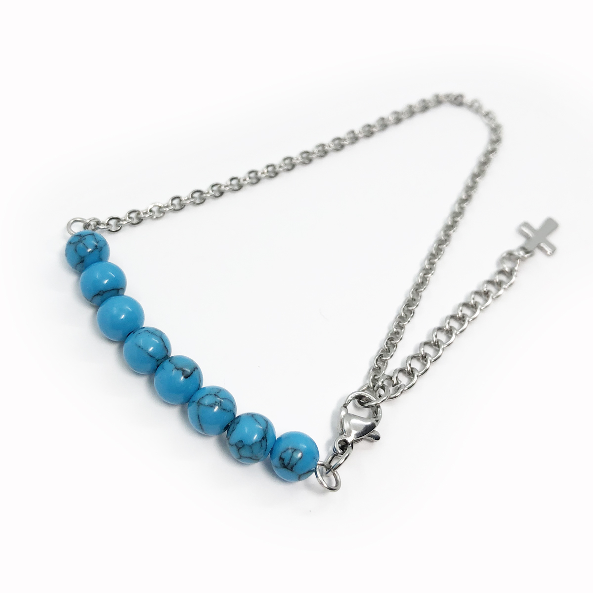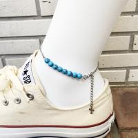 ステンレスチェーンアンクレット 染ターコイズ チェーン2.4mm幅