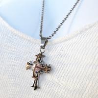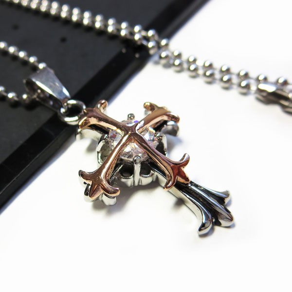 サージカルステンレスペンダント クロス/十字架 CZ キュービックジルコニア ピンクゴールド