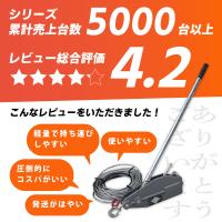 仕様: ●本体重量12kg ●日本語版取扱説明書(初めての方も安心) ●定格荷重1600Kg ●ワイヤーロープ20メートル付 ●付属のワイヤー直径は11mmです ●安全ピン2個(本体の持ち手の中に入っています。) ●使用用途は林業、機械の据え付け、重量物作業、緊急時対応等 ●あらゆる方向に引けますので車載して、いざという時のウインチリカバリーに使えます ●レバー1往復で6cm、ワイヤーを送ります ●GS規格(ドイツの工業製品品質保証規格) ●CEマーク(欧州安全規制適合品) ●PL保険(生産物賠償責任保険)加入商品 ●製造国:中国 ※使い方 1. Cのロックレバーを押し込みながらロックします。 (フリーの状態になります。) 2. Dロープガイドよりワイヤーエンドを挿入し適切な位置まで引っ張ります。 3. Cロックレバーを引っ張りロックを解除します。 (フリーを解除します。) 4. Eアンカーのピンに玉掛けワイヤーを通し(抜き差し可能)本体を固定します。 5. A前進レバーまたBバックレバーにハンドルを取り付けて操作します。 ※使用後、ワイヤーロープを取り外した後は必ずフリー状態を解除してロック状態にして保管してください。 |